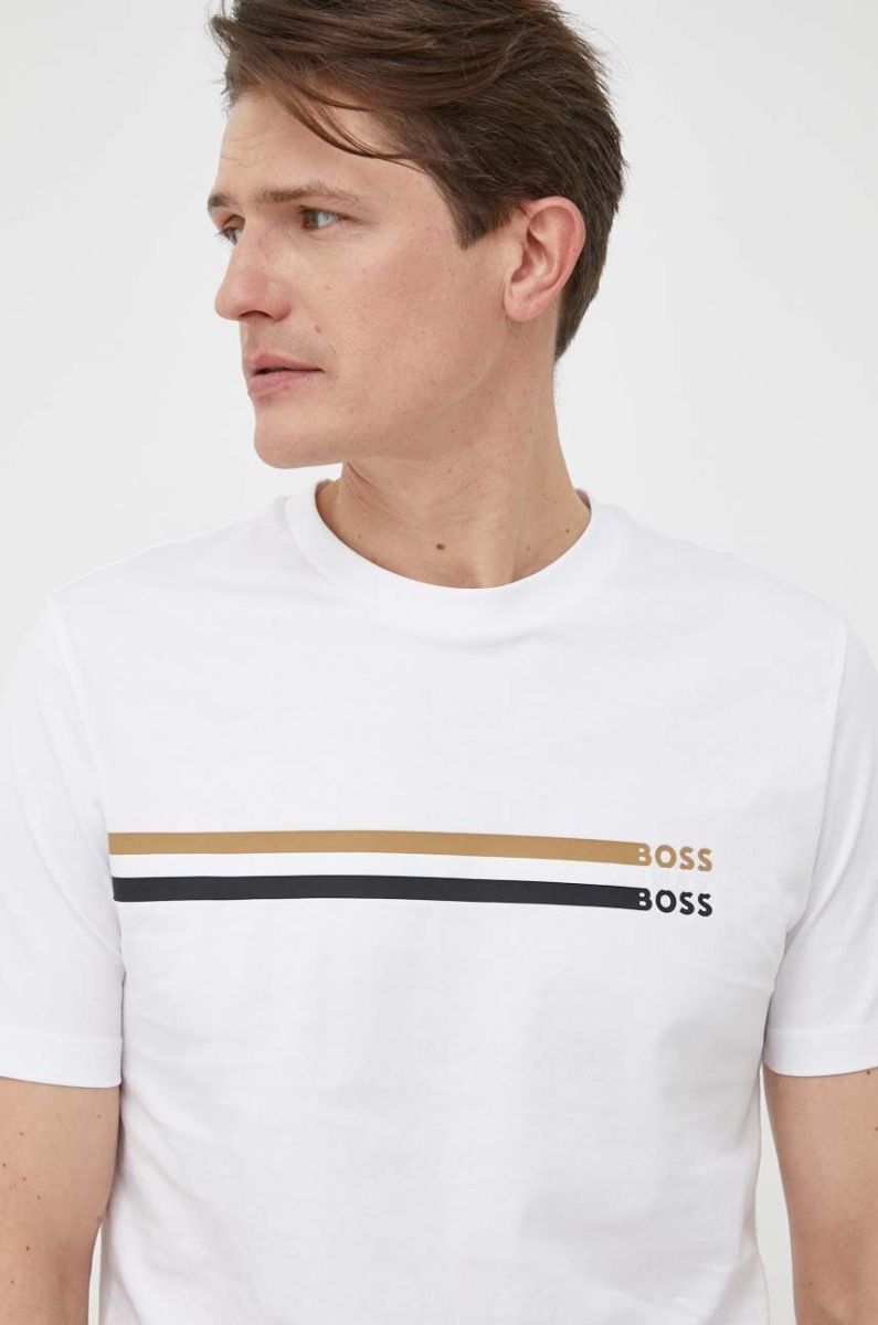 Бавовняна футболка BOSS колір білий з принтом (3225266)