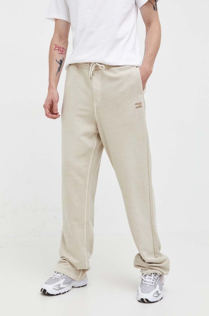 Бавовняні спортивні штани Tommy Jeans колір бежевий однотонні