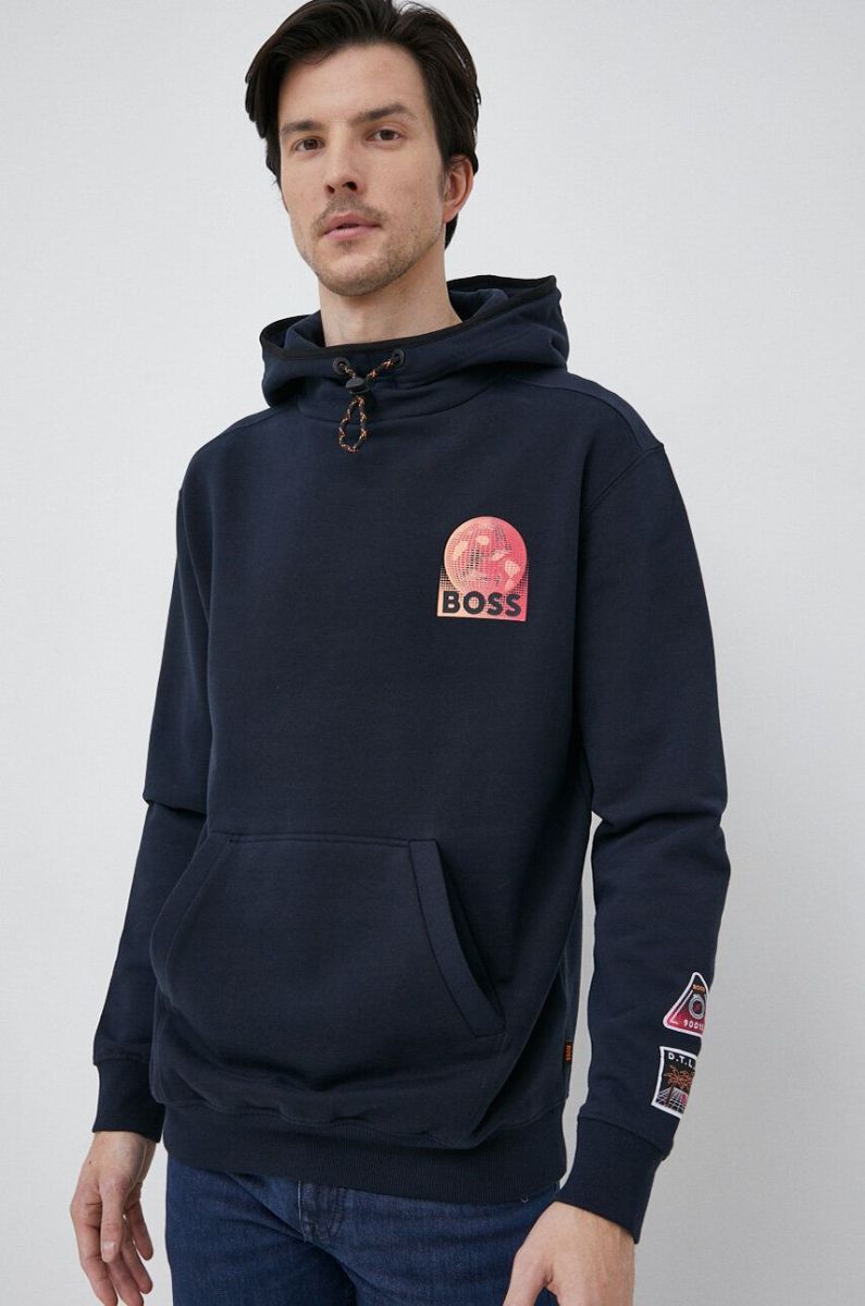 Кофта BOSS BOSS ORANGE чоловіча колір синій з капюшоном з принтом